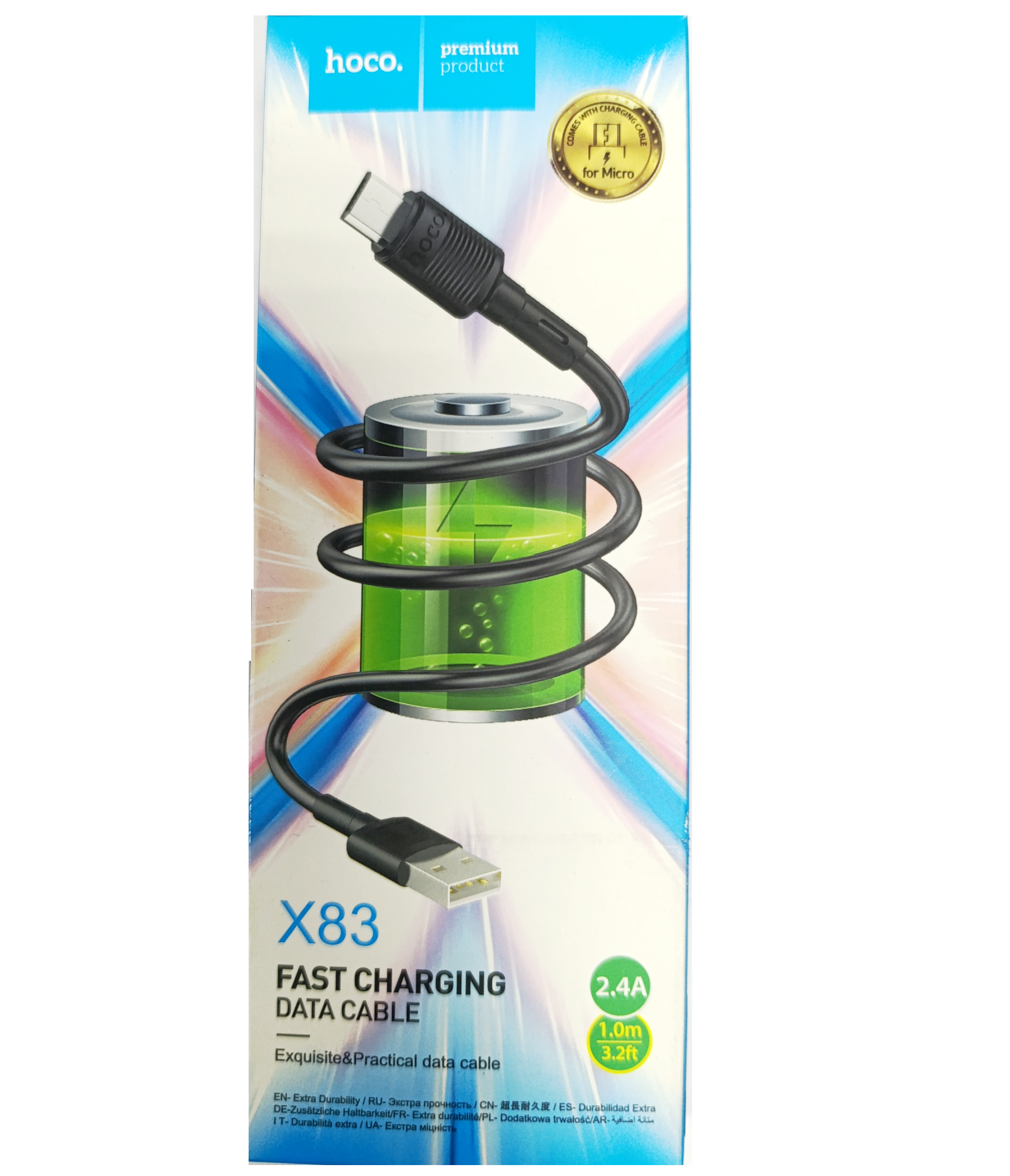 Кабель Hoco x83 USB-Micro USB, 2.4А, 1м, чёрный, арт. х83