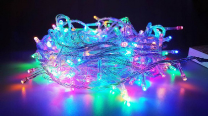 Гирлянда, 6 м., 100 диод., 8 режимов, от сети, черный провод, АССОРТИ, В100LED-6м