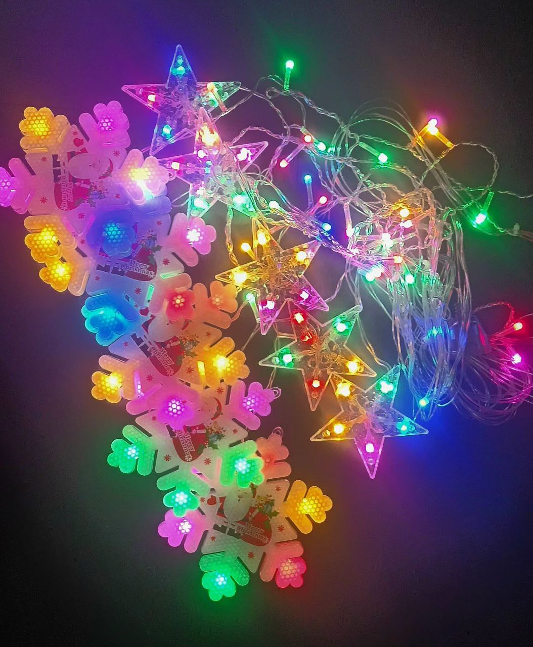 Гирлянда бахрома "Звезды, снежинки", 145*145*105 см., цветной, арт. 95L