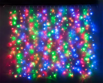Гирлянда штора, 3*2 м., 320 диод., 8 режимов, от сети, белый провод, мультик, арт. 510962