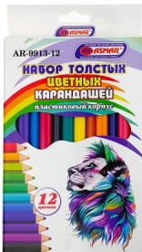 Набор цветных карандашей ( 12 шт.), ASMAR "Лев", пластик, толстый корпус, заточен., арт. AR-9913-12