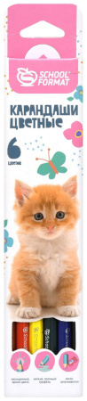 Набор цветных карандашей ( 6 шт.), SCHOOLFORMAT "Пушистые котята", НВ, заточеные, КЦ06-ПШК