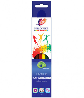 Набор цветных карандашей ( 6 шт.), ЛУЧ. Классика, 4М, дерево, заточеные, арт. 29С1709-08