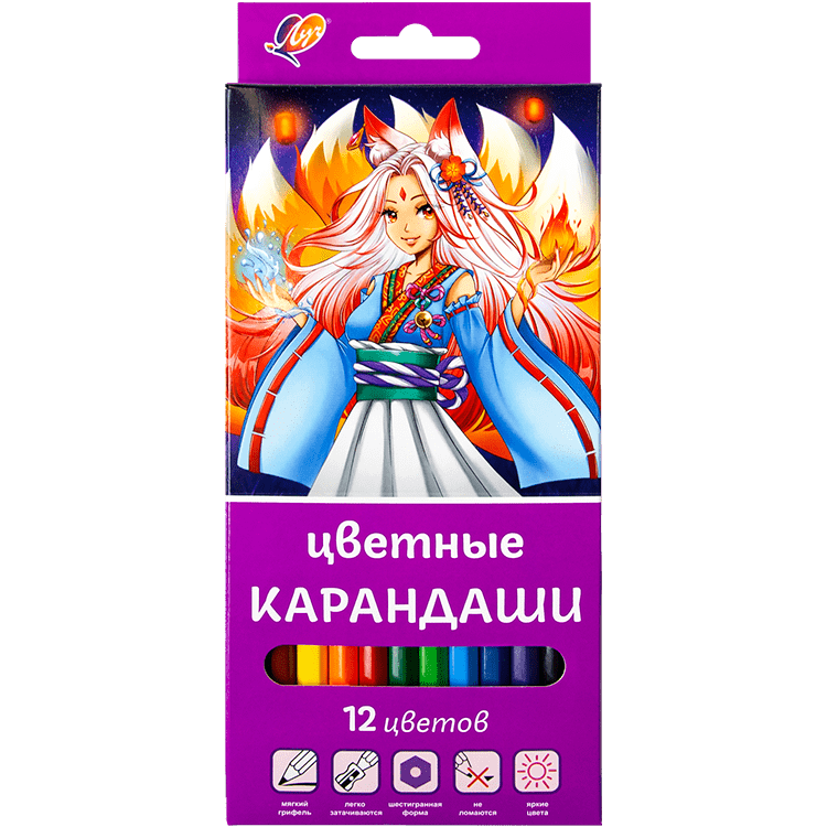 Карандаши цветные ЛУЧ Аниме "Сакура" деревянные 12 цветов, арт. 33С 2217-08