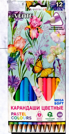 Набор цветных карандашей ( 12 шт.), deVENTE "Mega soft", 4М, пастельные цвета, дерево, заточен, 5022020