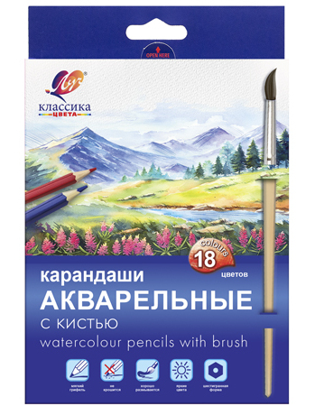 Набор цветных акварельных карандашей ( 18 шт.), ЛУЧ. "Классика цвета", с кистью, дерево, заточеные, арт. 32С 2091-08