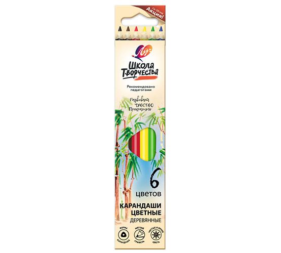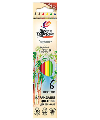 Набор цветных карандашей ( 6 шт.), ЛУЧ. Школа творчества, М, дерево, арт.1805-08