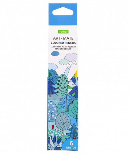 Набор цветных карандашей ( 6 шт.), Hatber "ART MATE", HB, пластик, заточен, арт. CS_068176