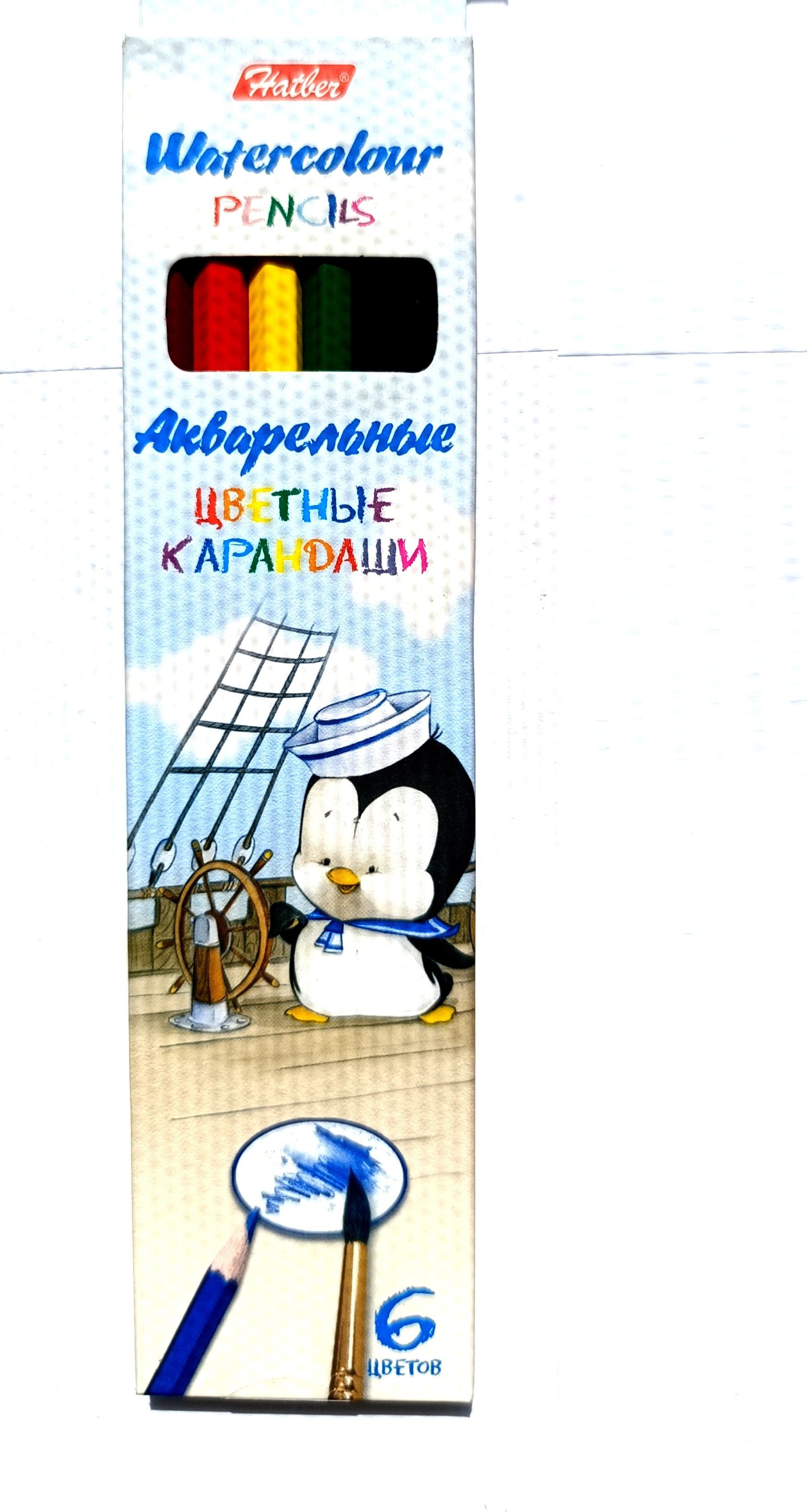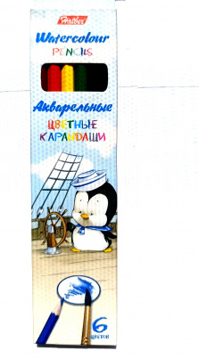 Набор цветных акварельных карандашей ( 6 шт.), Hatber " Пингвин", НВ, заточеные, ВКа_06360