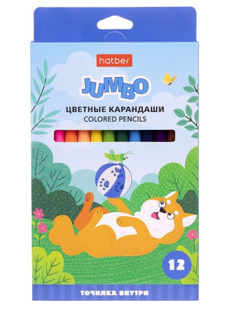 Набор цветных карандашей ( 12 шт.), Hatber "Jumbo", яркие, мягкие, дерево, заточен, с точилкой, CS_082683