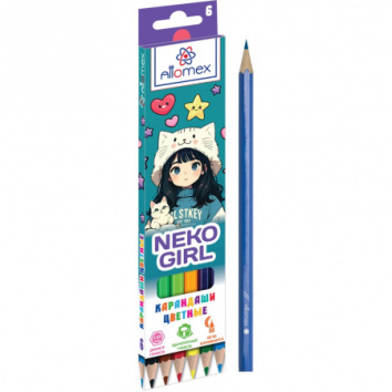 Набор цветных карандашей ( 6 шт.), Attomex "Neko girl", М, дерево, заточеные, арт. 5021541