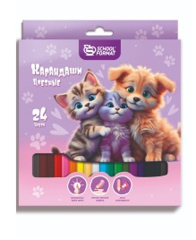 Набор цветных карандашей ( 24 шт.), SCHOOLFORMAT "Микс для девочек", 2М, дерево, заточеные, КЦ24-МДВ