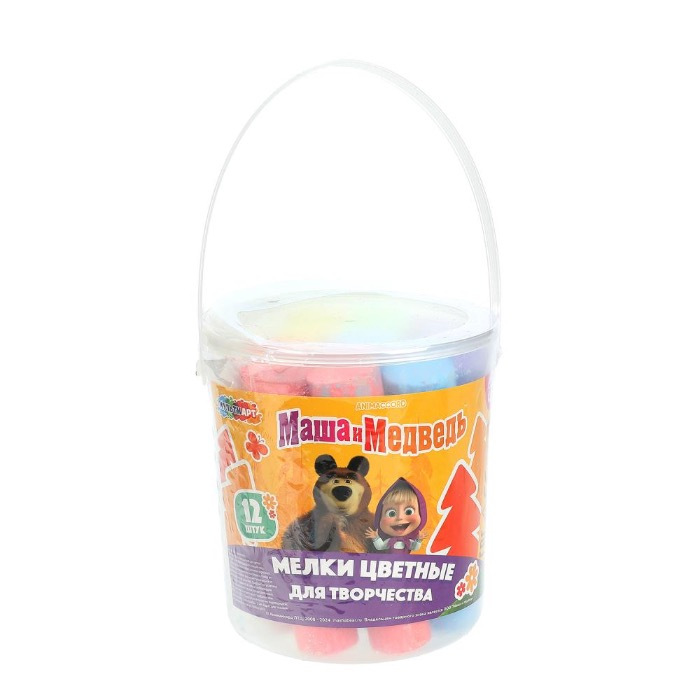 Мелки цветные , 12 шт в ведре Маша и медведь МУЛЬТИ АРТ