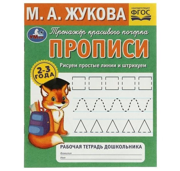 Прописи, Умка М. А. Жукова "Тренажёр красивого почерка. Рисуем простые линии и штрихуем", 2-3 года, А5, арт.07275-1