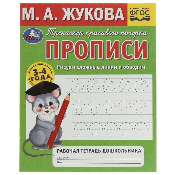 Прописи, Умка М. А. Жукова "Тренажёр красивого почерка. Рисуем сложные линии и обводим", 3-4 года, А5, арт.07276-8