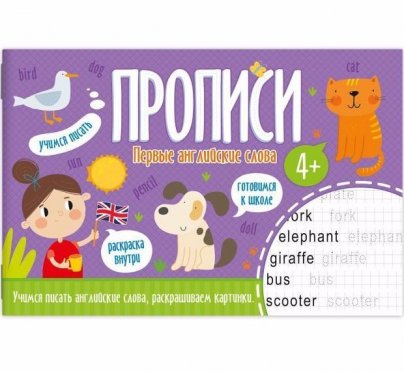 Прописи, "Учимся писать английские слова, раскрашиваем картинки. Первые английские слова", А5, арт.52970