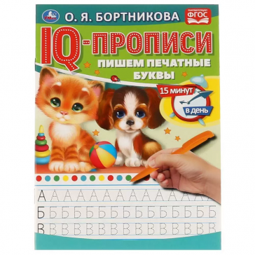 Прописи О. Бортникова. Умка, "IQ-прописи Пишем печатные буквы", А5, арт.