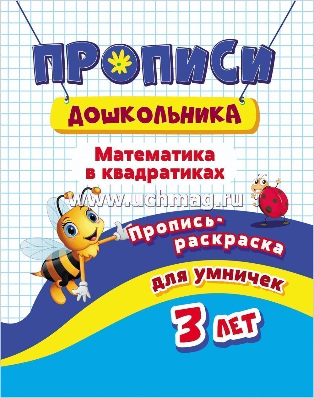 Пропись И.С. Батова "Пропись-раскраска для умничек. Математика в квадратиках: для 3 лет", А5, арт. 6642д