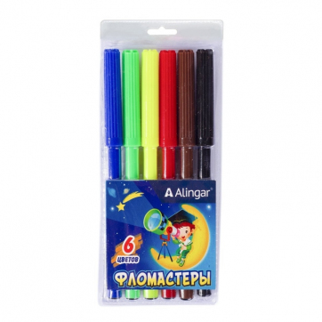 Набор фломастеров Alingar "Подзорная труба", 6 цв., смываемые чернила, арт. AL 8968