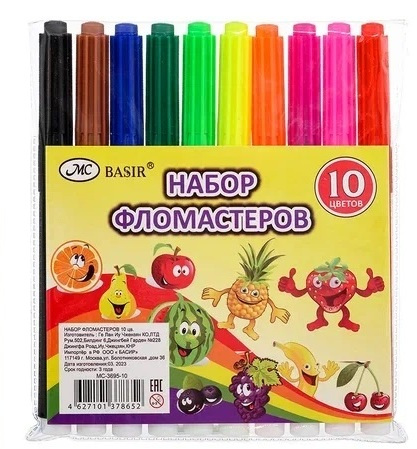 Набор фломастеров Basir "Весёлые фрукты", 10 цв.,