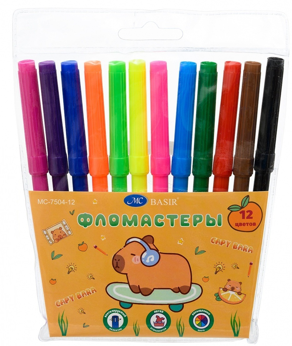 Набор фломастеров Basir "Капибара", 12 цв.,