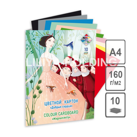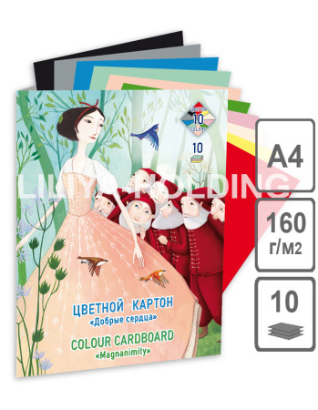 Картон цветной ГОЗНАК "Добрые сердца", А4,10 л., 10 цв., двусторонний, мелованный в папке, ПК-1425