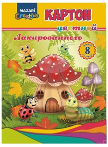 Картон цветной MAZARI "Домик-грибок", А4, 8 л., 8 цв., односторонний, лакированный, в папке, М-16467