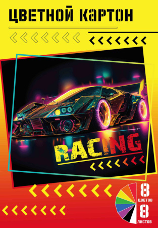 Картон цветной Centrum "Racing", А4, 8 л., 8 цв., односторонний,
