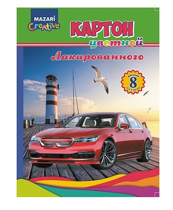 Картон цветной Mazari "Авто", А4, 8л., 8цв.,