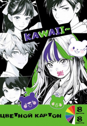 Картон цветной CENTRUM "Аниме Smile", А4, 8 л., 8 цв., односторонний, немелованный, в папке, 220 г/м2, 75029