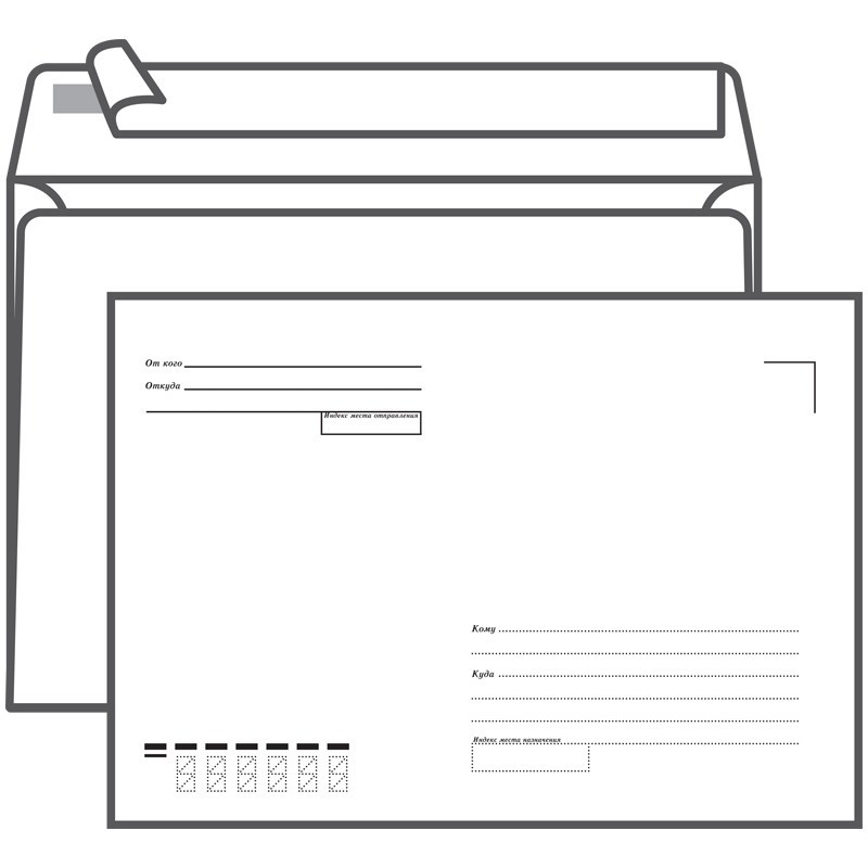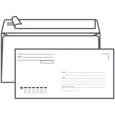 Конверт Е65, Ряжская печатная фабрика, 110*220 мм., с подсказом, б/окна, отр. лента