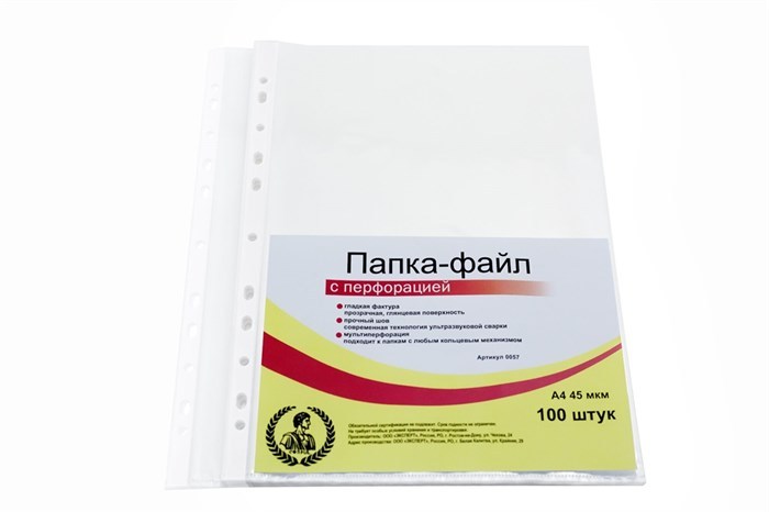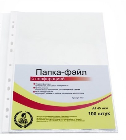 Папка-файл А4 "Консул", 45 мкм, 100 шт., гладкие, с перфорацией, высокое качество, арт. 0057