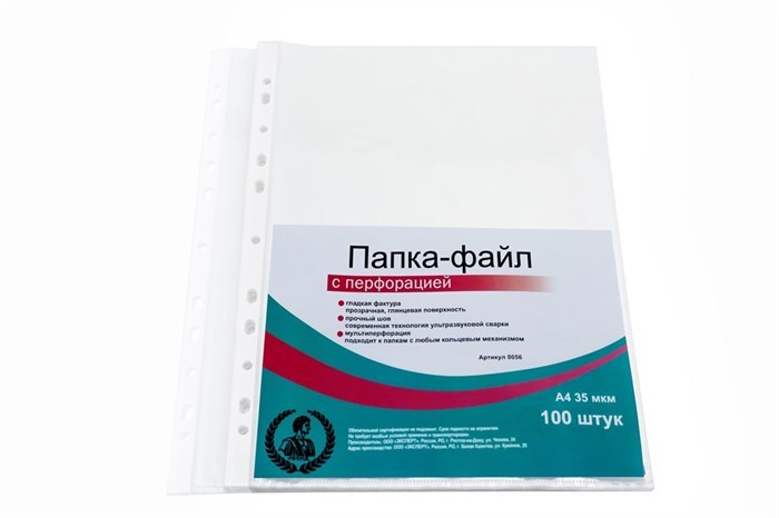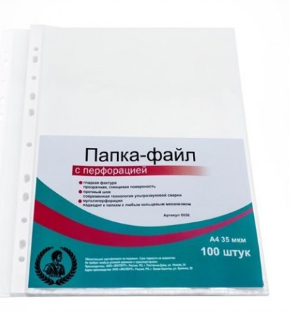 Папка-файл А4 "Консул", 35 мкм, 100 шт., гладкие, с перфорацией, высокое качество, арт. 0056