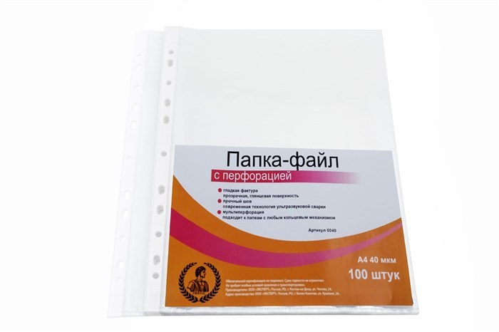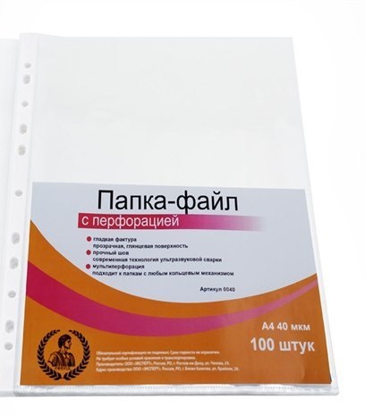 Папка-файл А4 "Консул", 40 мкм, 100 шт., гладкие, с перфорацией, высокое качество, арт. 0040