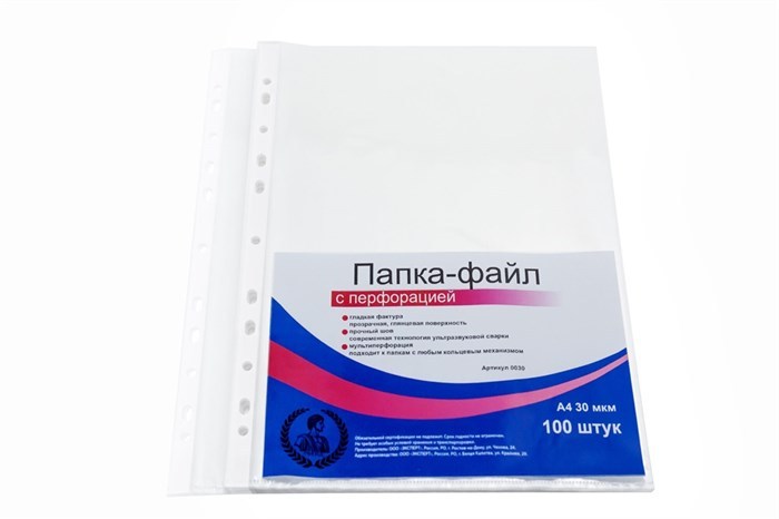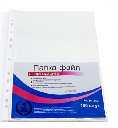 Папка-файл А4 "Консул", 30 мкм, 100 шт., гладкие, с перфорацией, высокое качество, арт. 0030