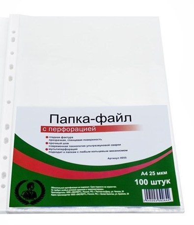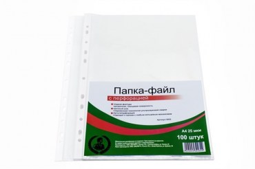 Папка-файл А4, "Консул" 25 мкм, 100 шт., гладкие с перфорацией, высокое качество, арт. 0055